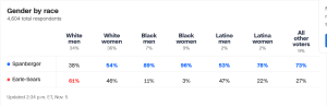 Certainly both the NJ and VA governor’s races did dispel a worry Democrats had been harboring. Trump’s defeats of Hillary Clinton and Kamala Harris had cast doubt on the idea that Democratic women candidates can amass a broad-based winning coalition, but Mikie Sherrill’s and Abigail Spanberger’s double digit wins (in the New Jersey and Virginia governor’s races, respectively) seemed to throw cold water on that idea.[1]